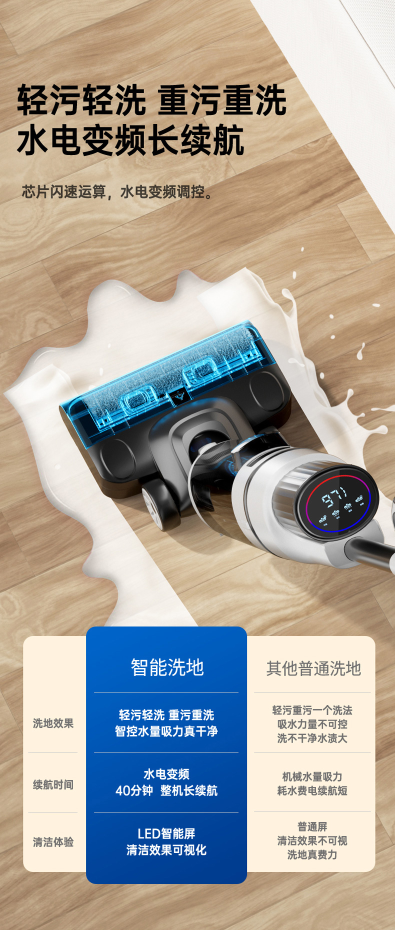 添可极客蒸汽洗地机躺平助力除油渍安静0缠毛长续航