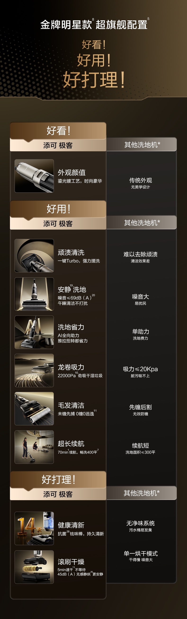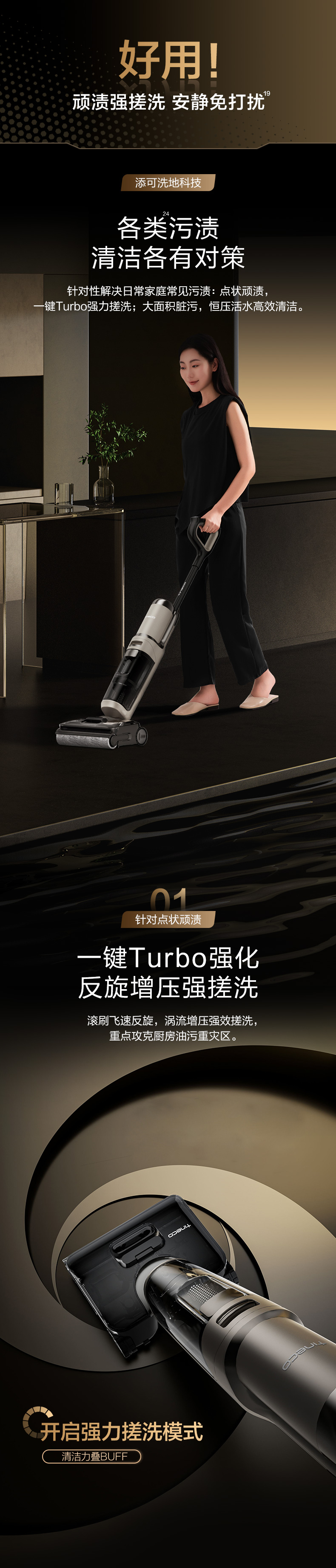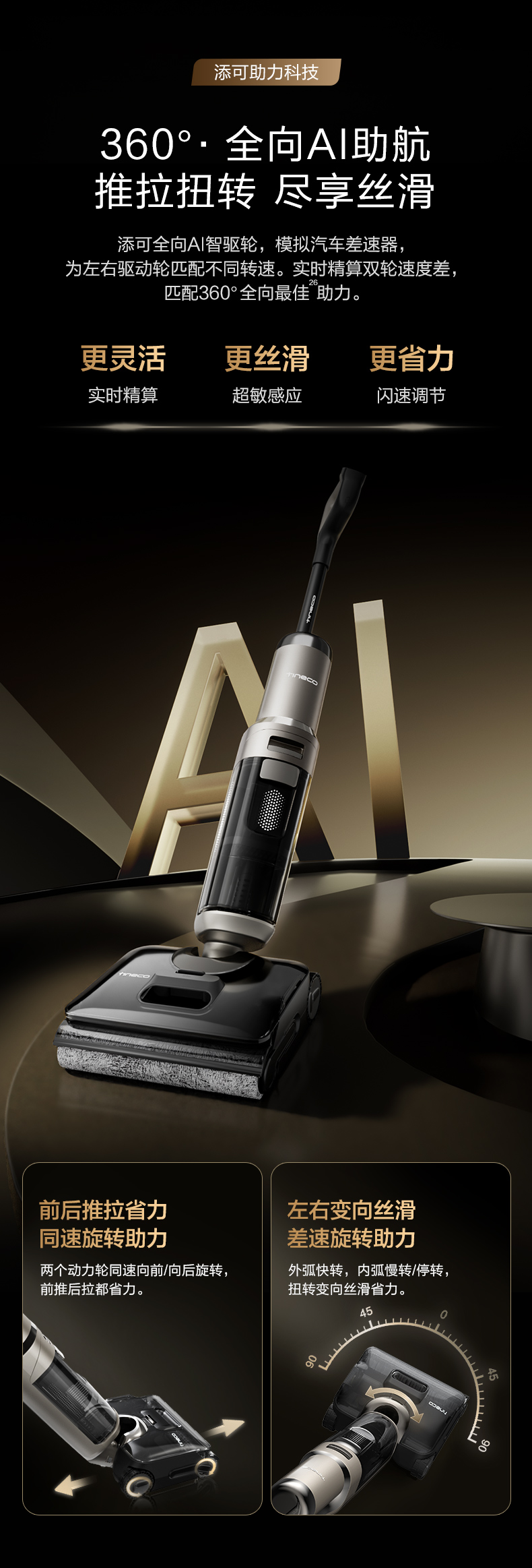 添可极客蒸汽洗地机躺平助力除油渍安静0缠毛长续航