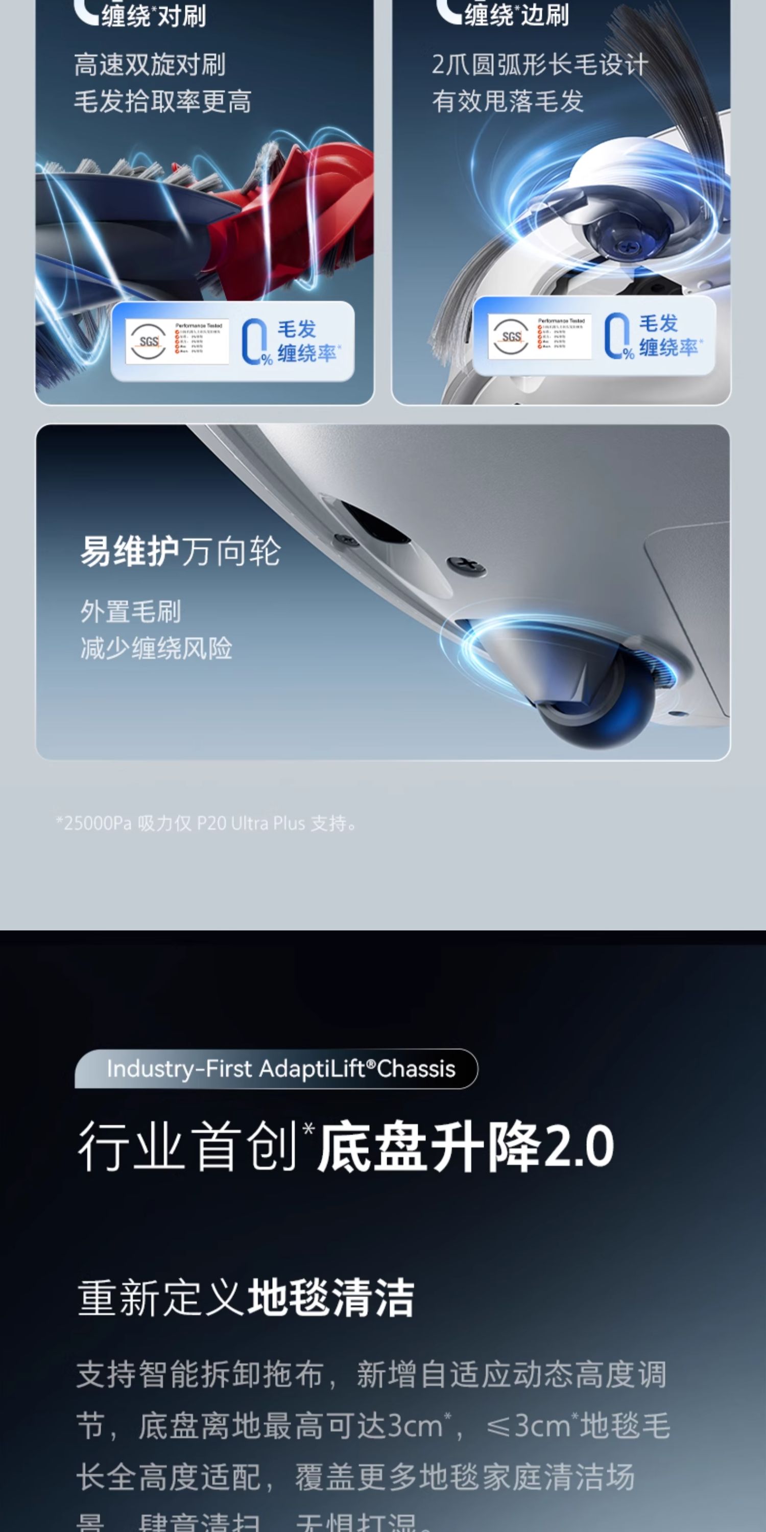 石头P20 Pro/Ultra/Plus扫地机器人拖地一体机0缠