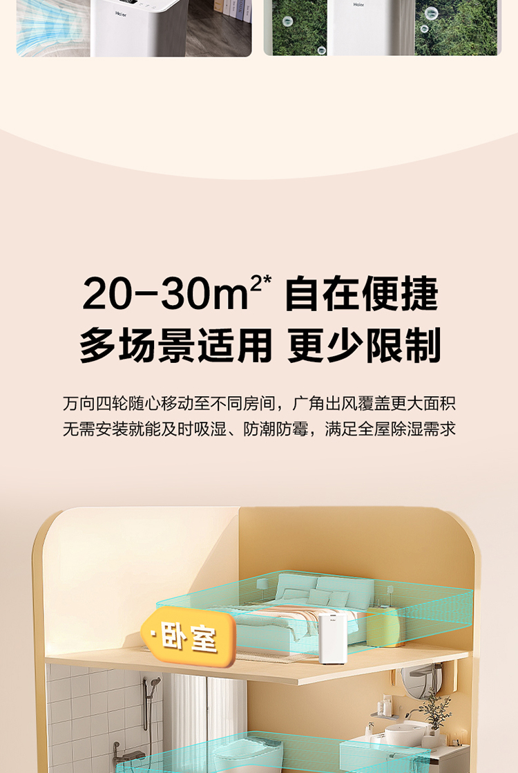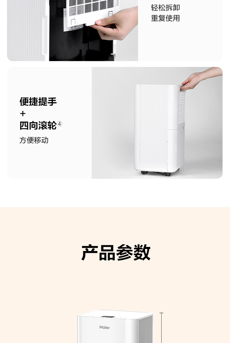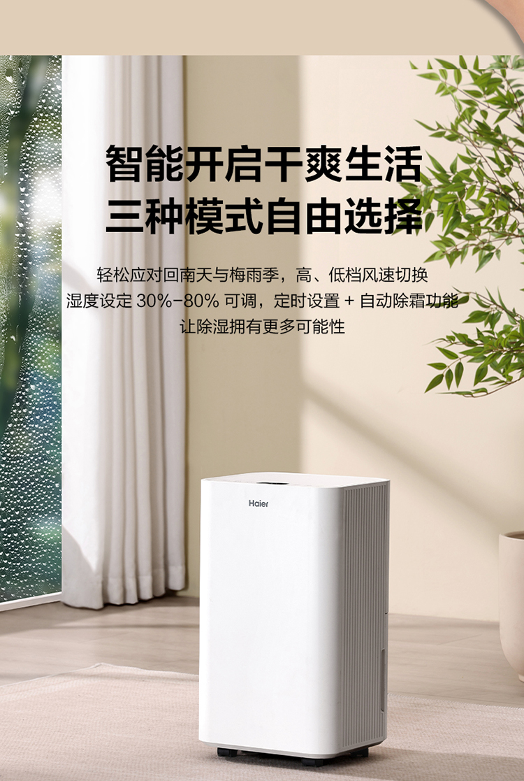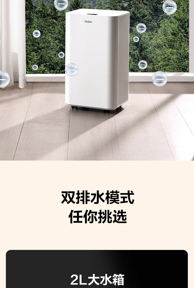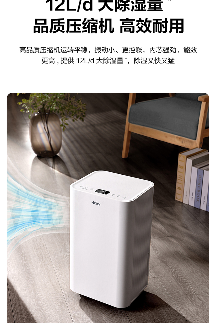 海尔除湿机家用抽湿机轻音小型吸湿器室内干衣去湿除潮神器梅雨季