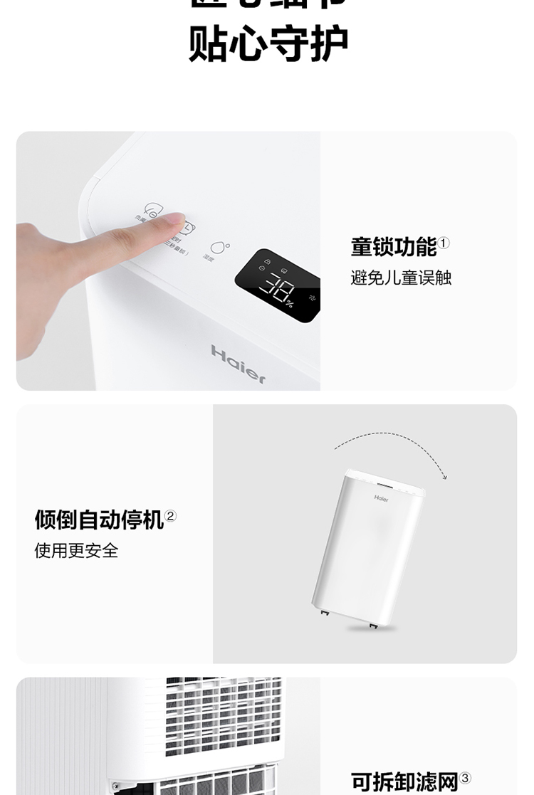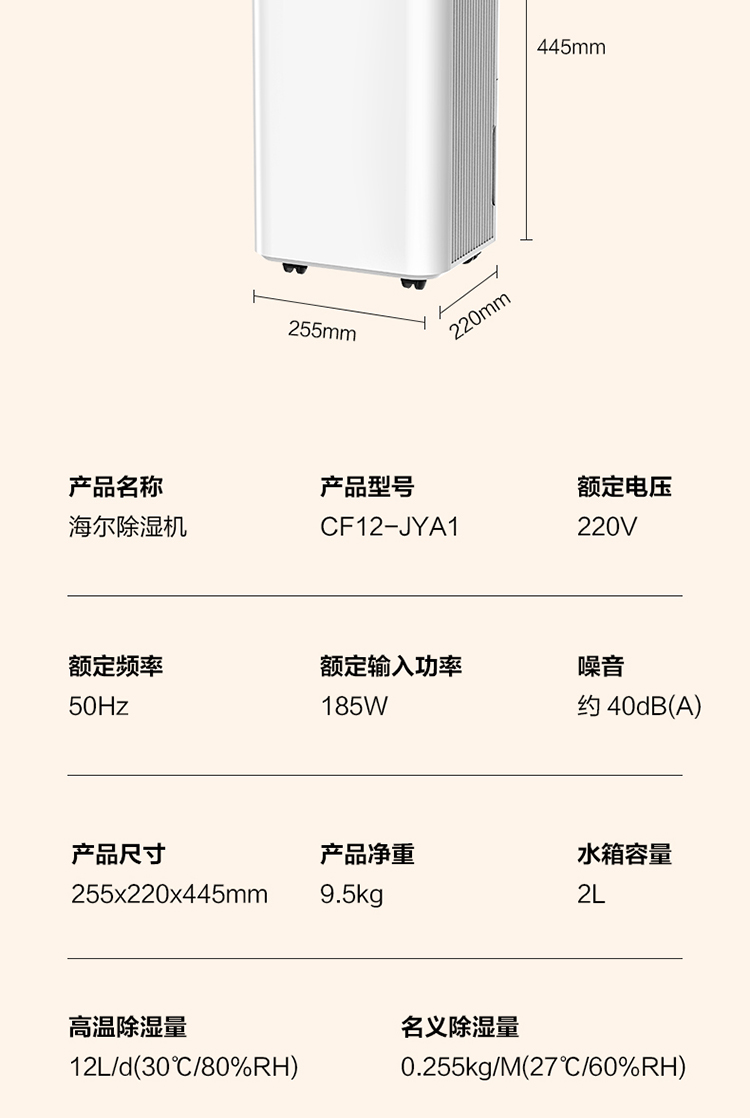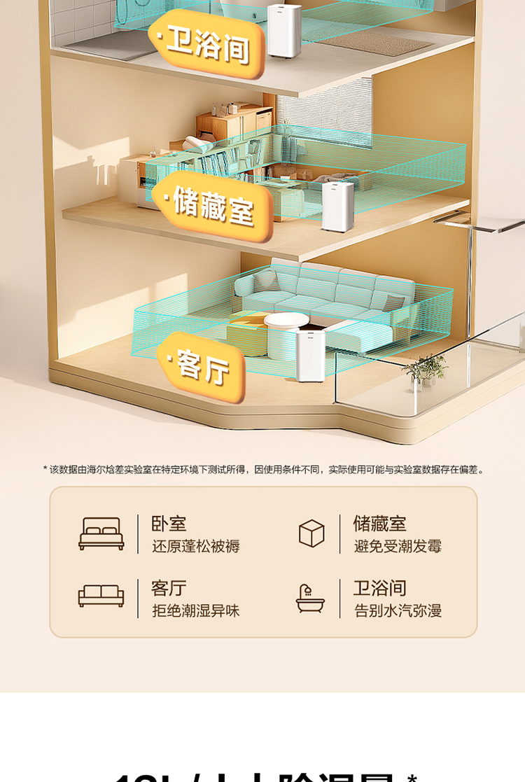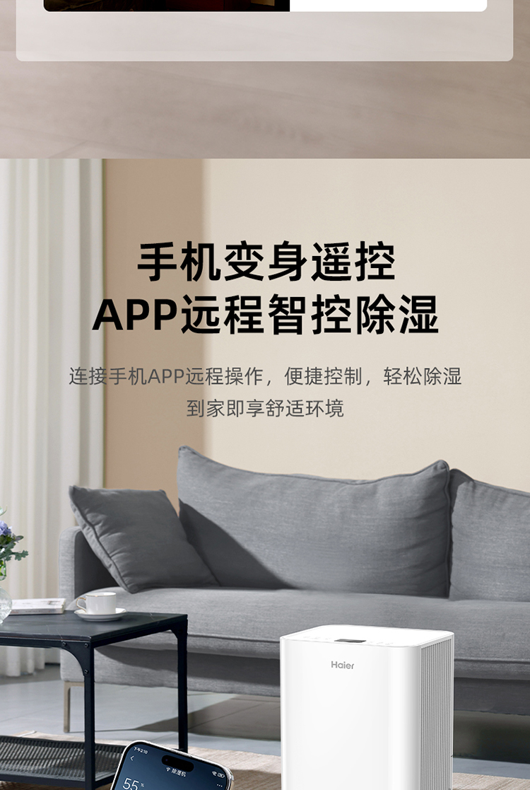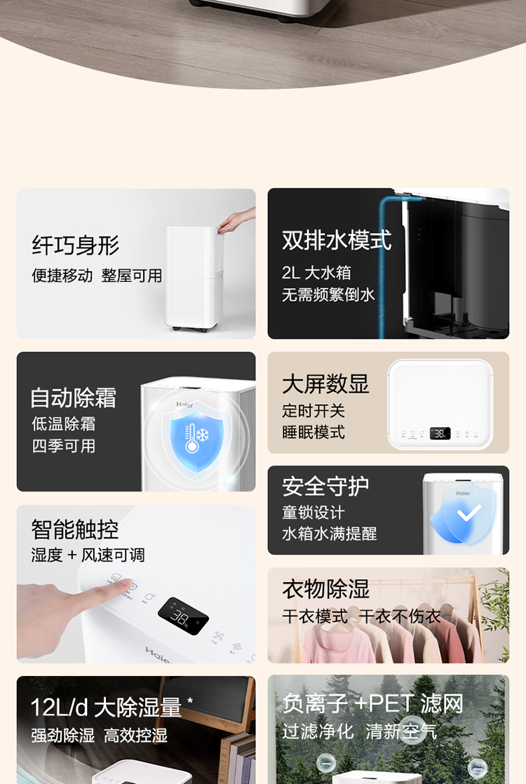 海尔除湿机家用抽湿机轻音小型吸湿器室内干衣去湿除潮神器梅雨季