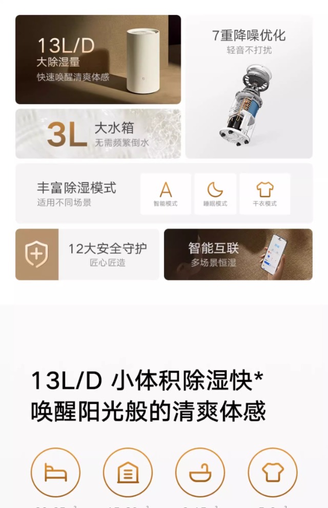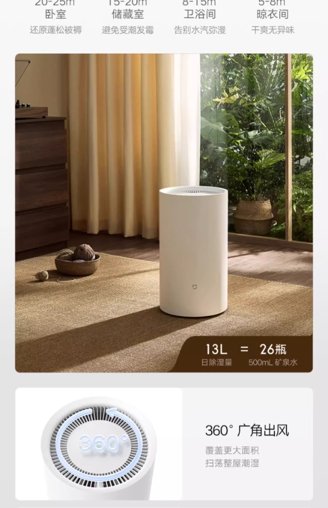小米米家除湿机13L家用客厅卧室抽湿器干衣除潮智能吸排湿器正品