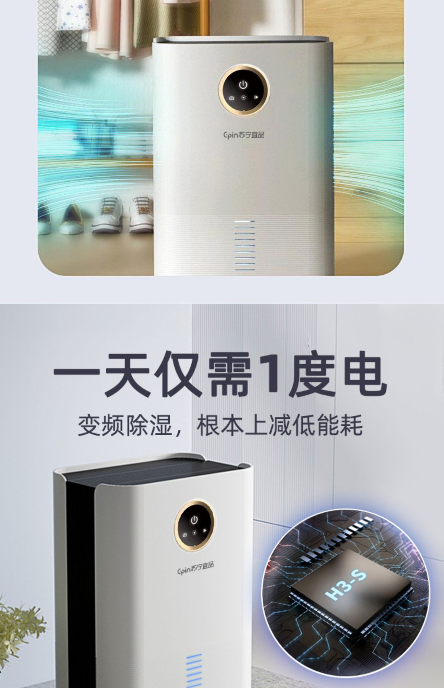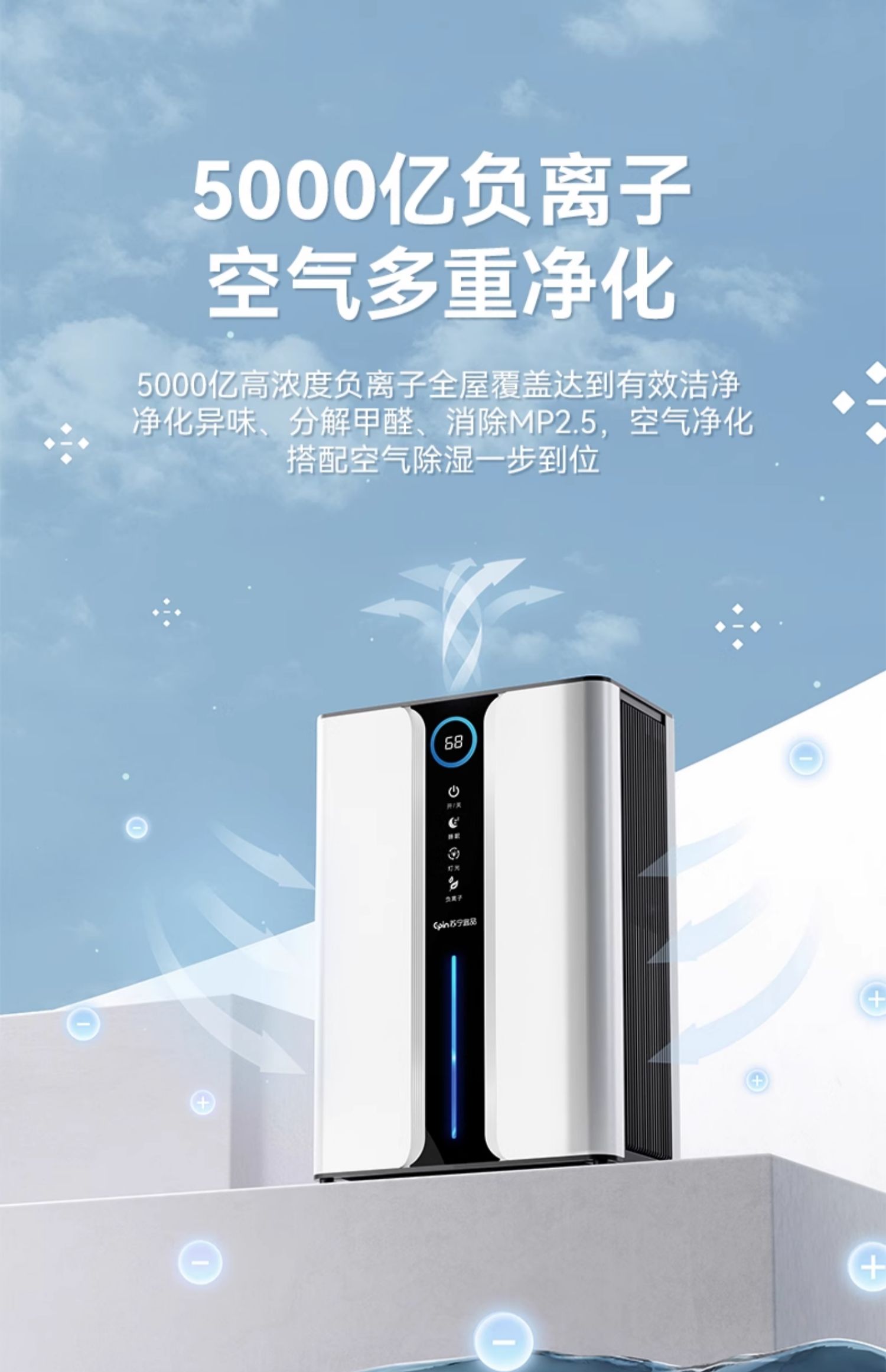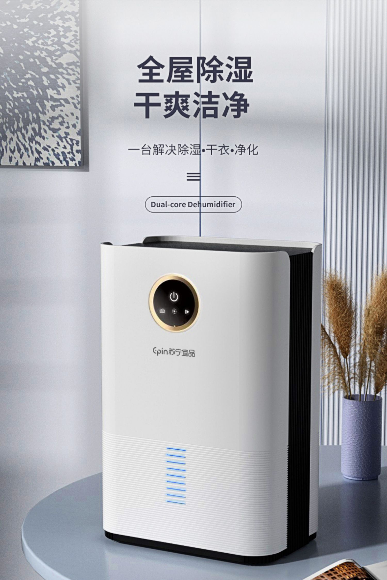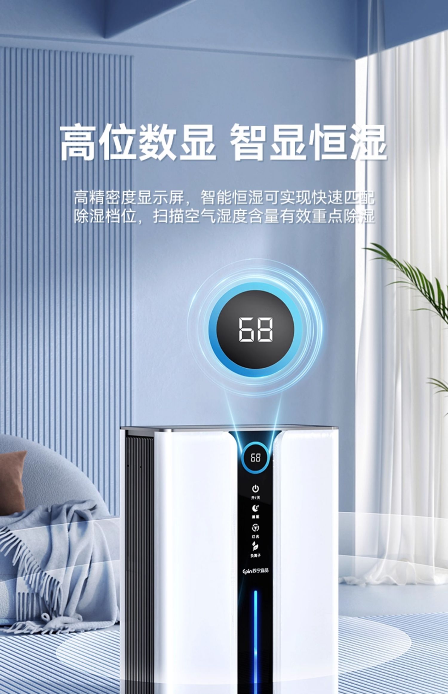 苏宁宜品除湿机家用吸湿室内静音抽湿回南天神器空气净化器一体机