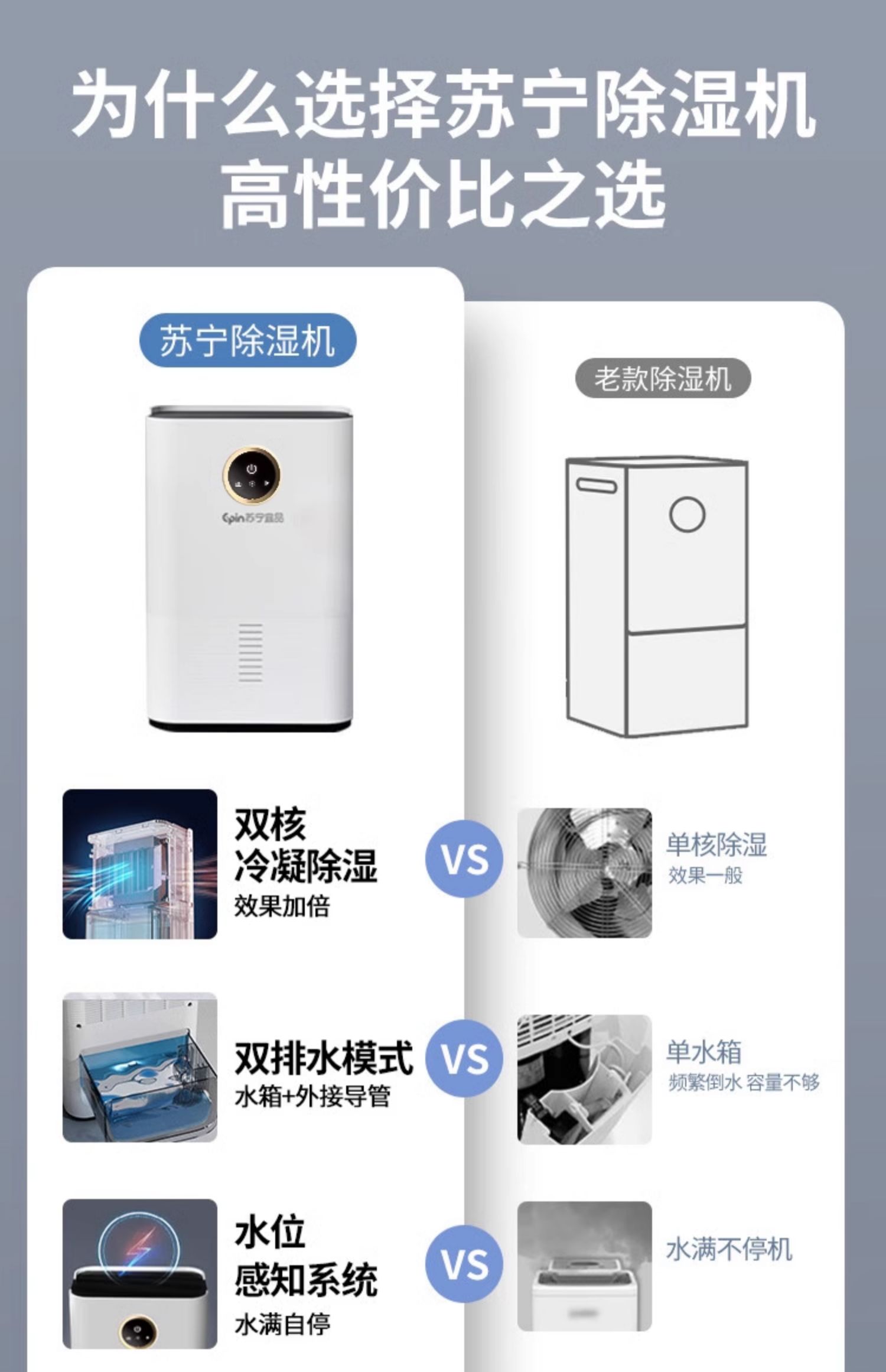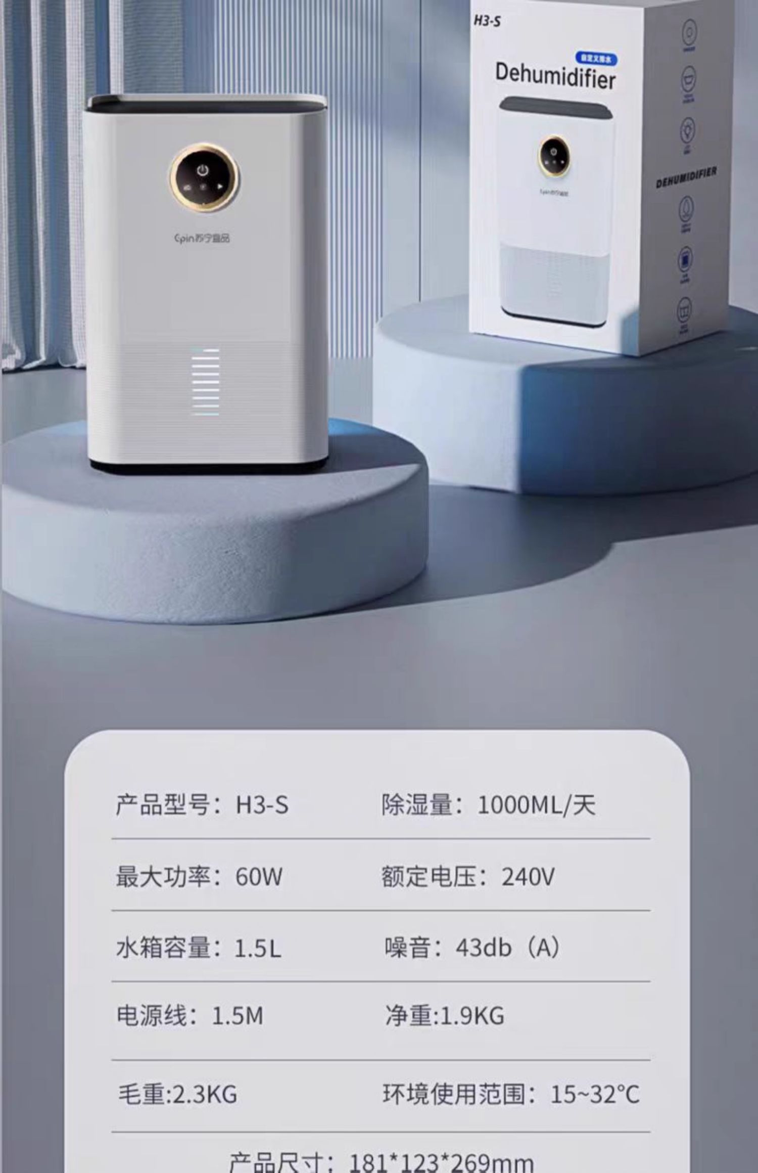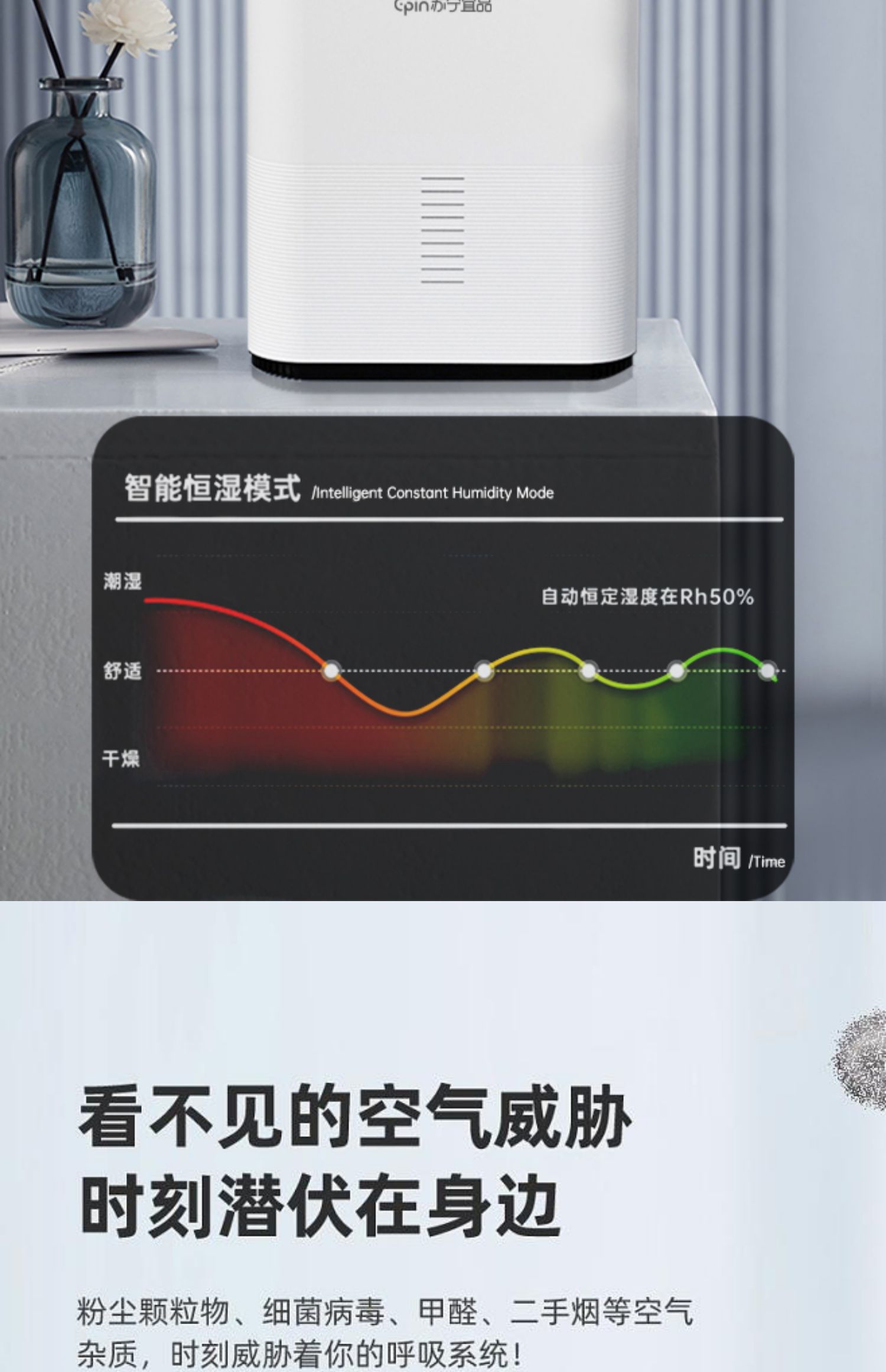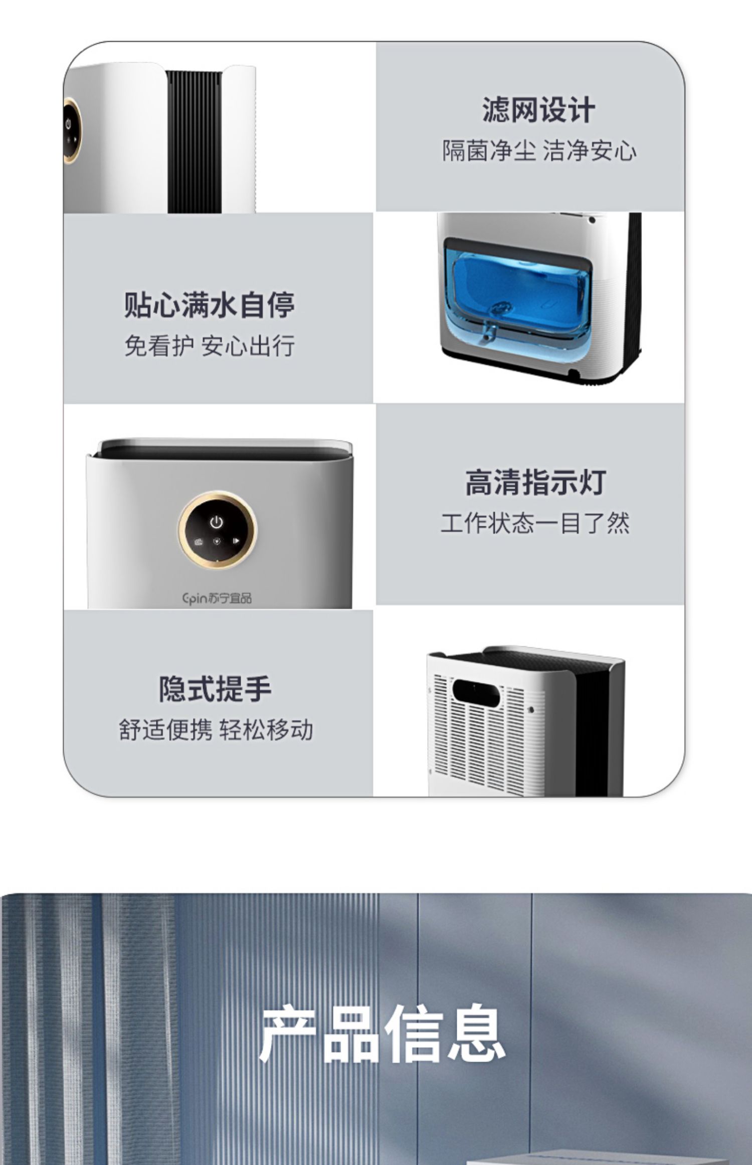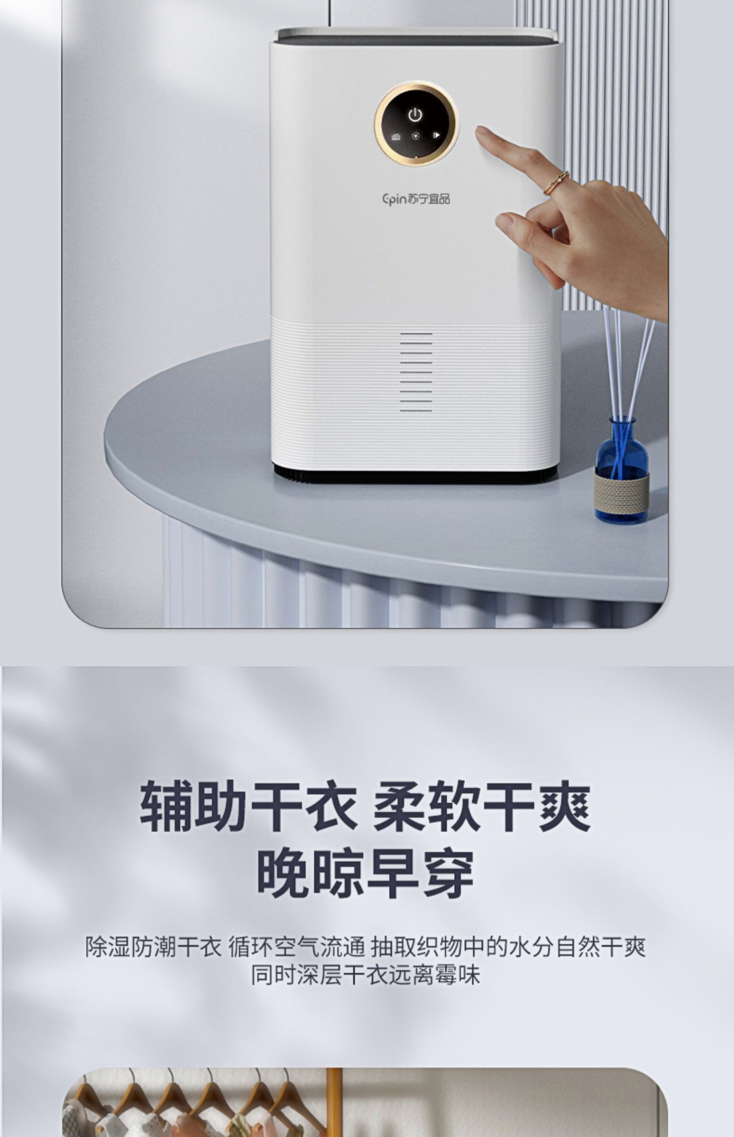苏宁宜品除湿机家用吸湿室内静音抽湿回南天神器空气净化器一体机