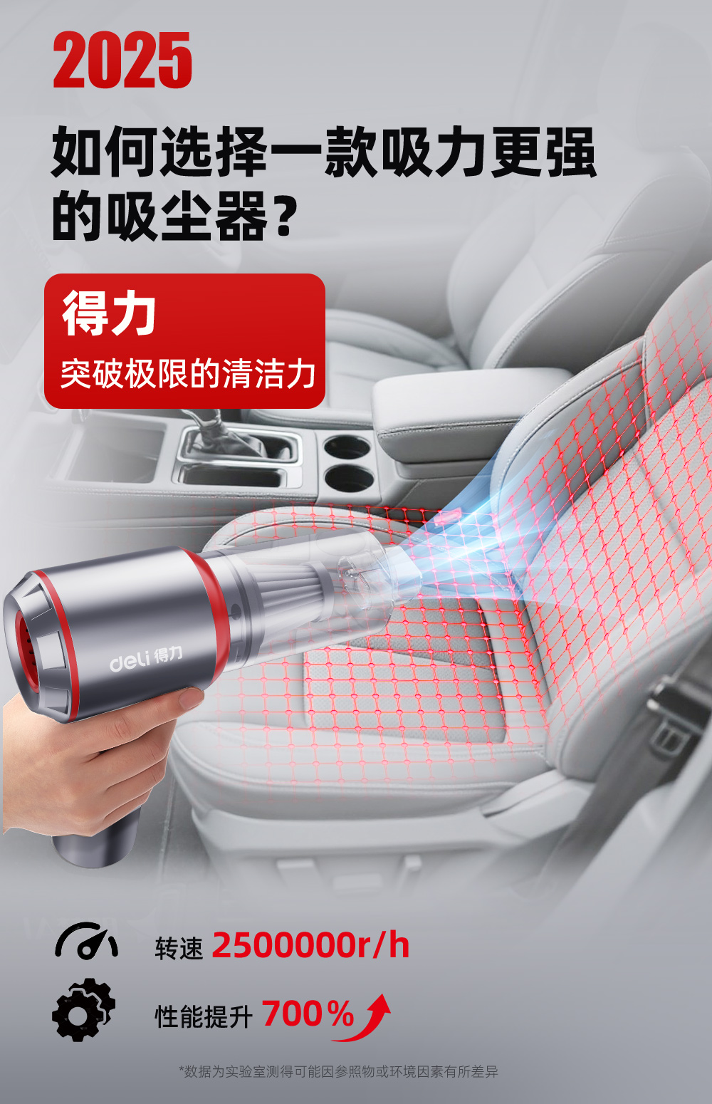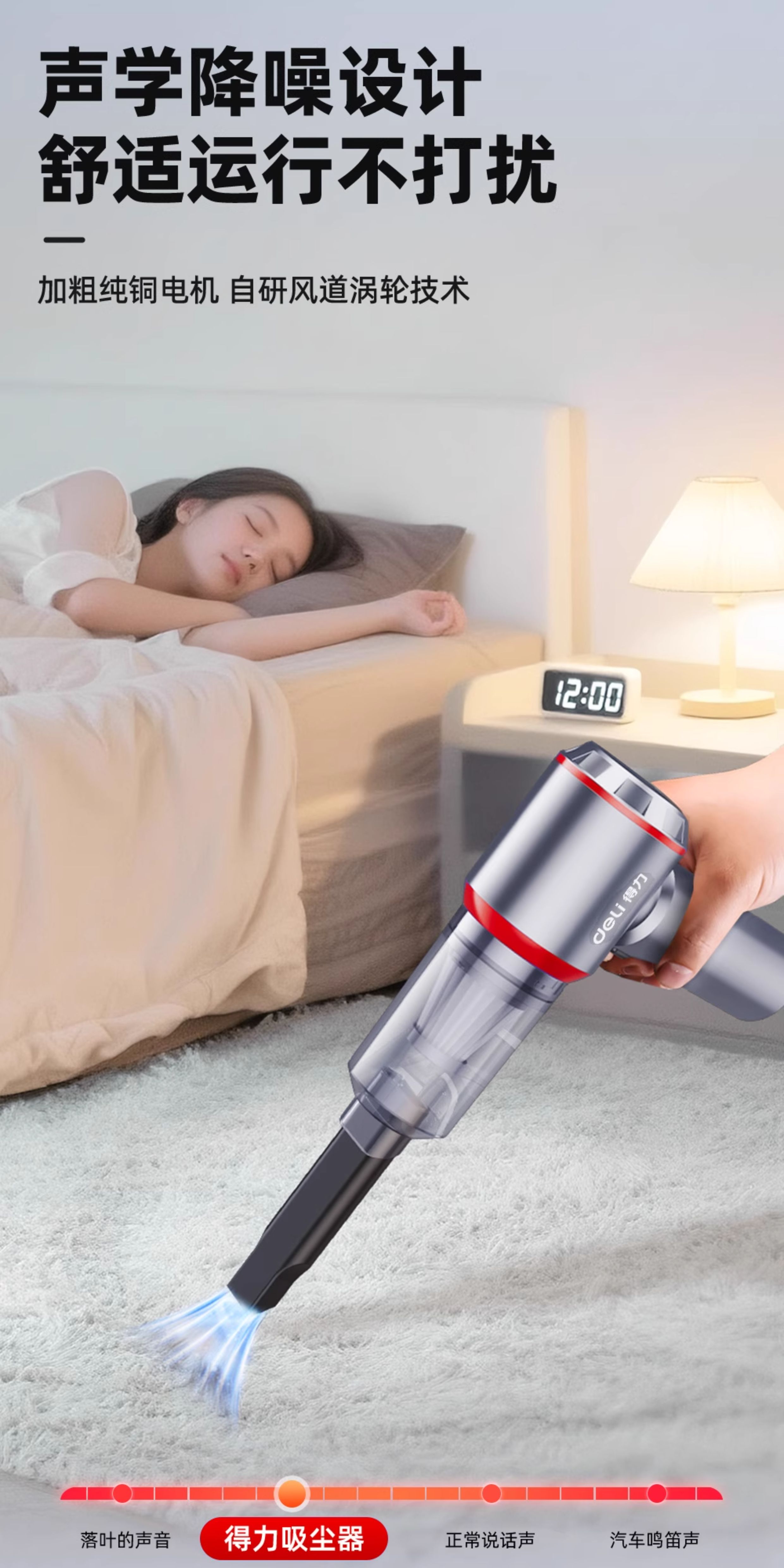 得力车载吸尘器手持小型迷你无线充电汽家用吹尘机2025超强大吸力