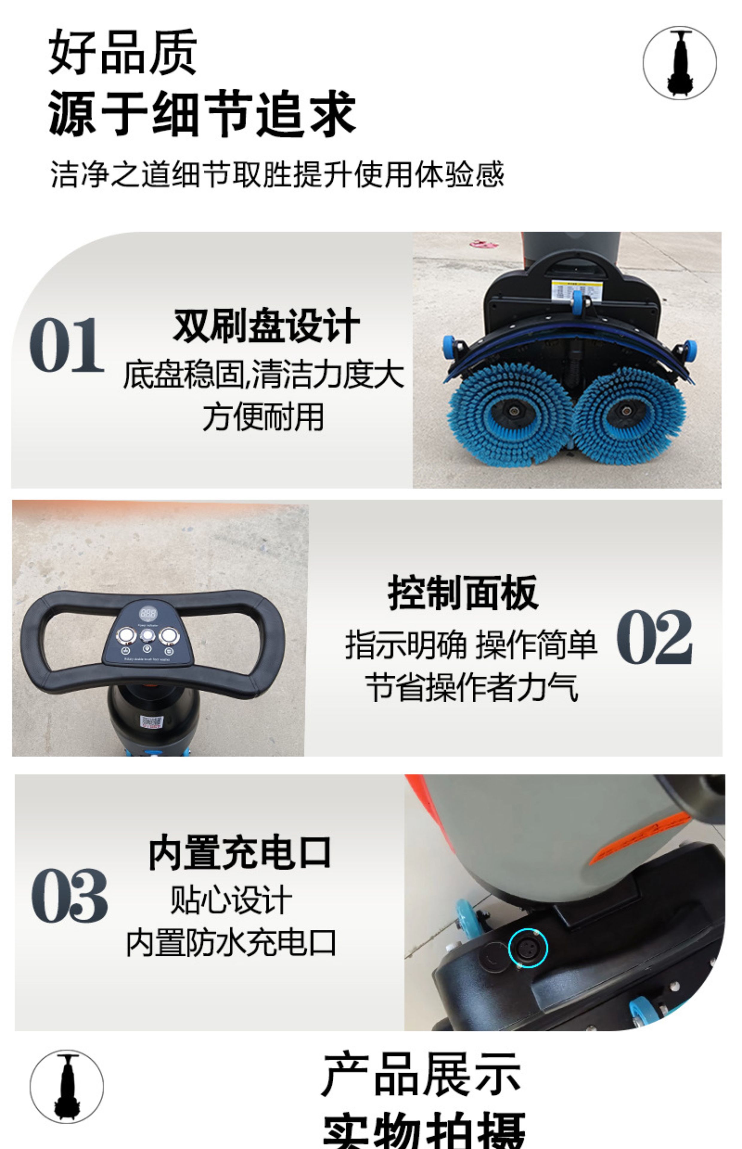 手推式洗地机迷你洗地机 酒店超市食堂清洗机物业别墅商用洗地机