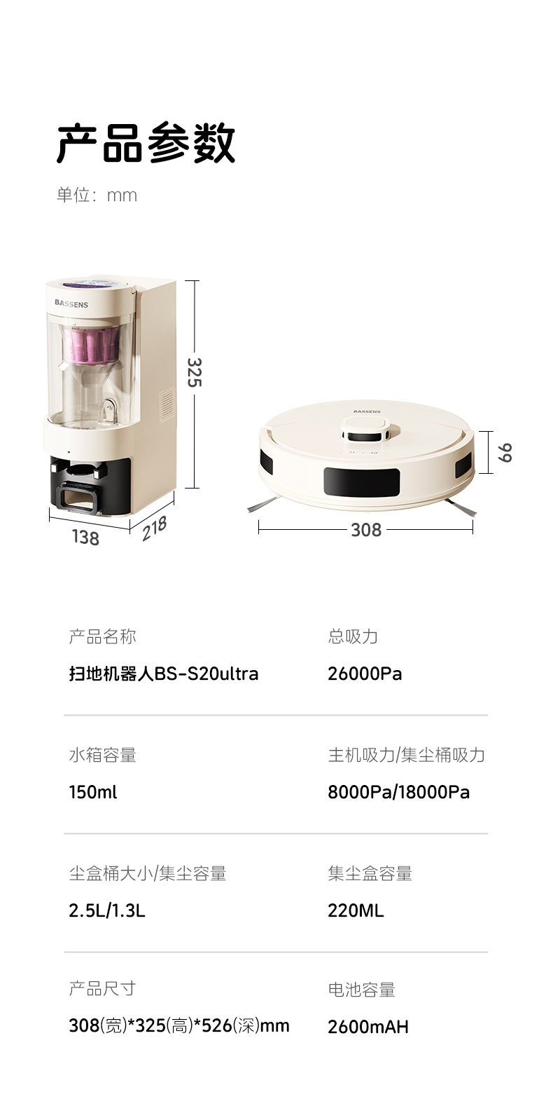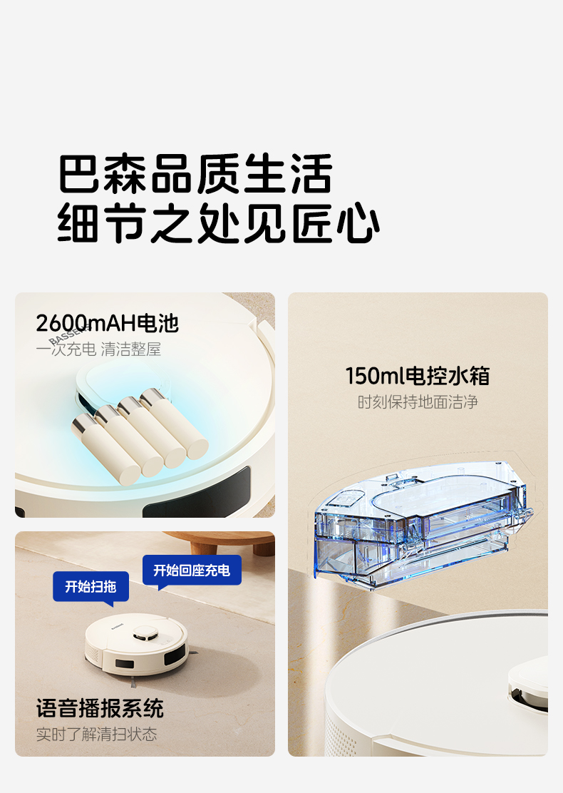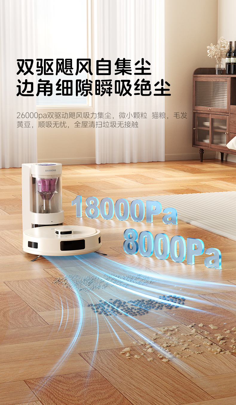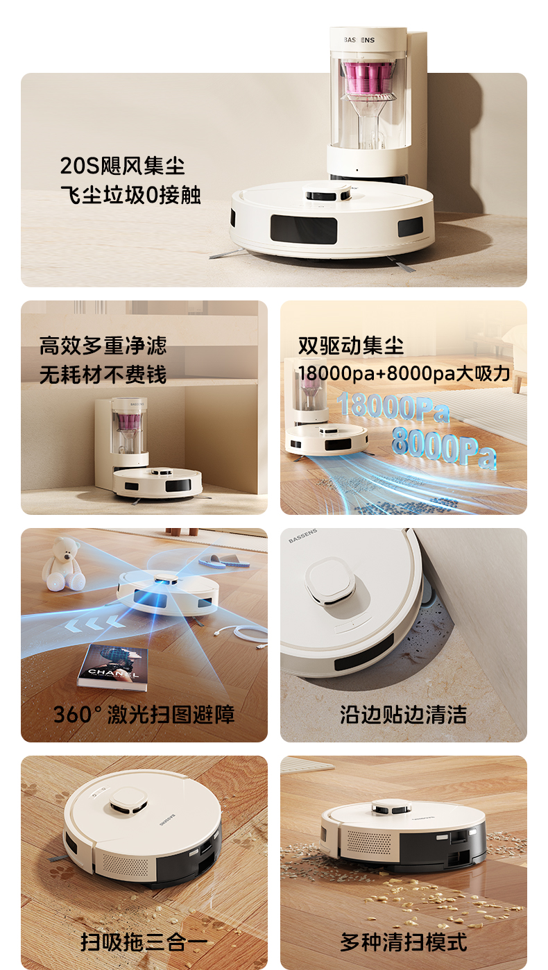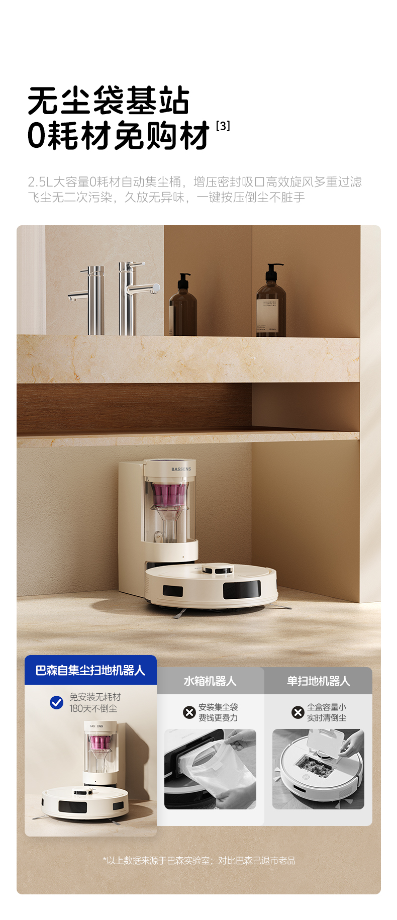 巴森扫地机器人家用全自动自集尘智能扫拖吸三合一扫地机一体机