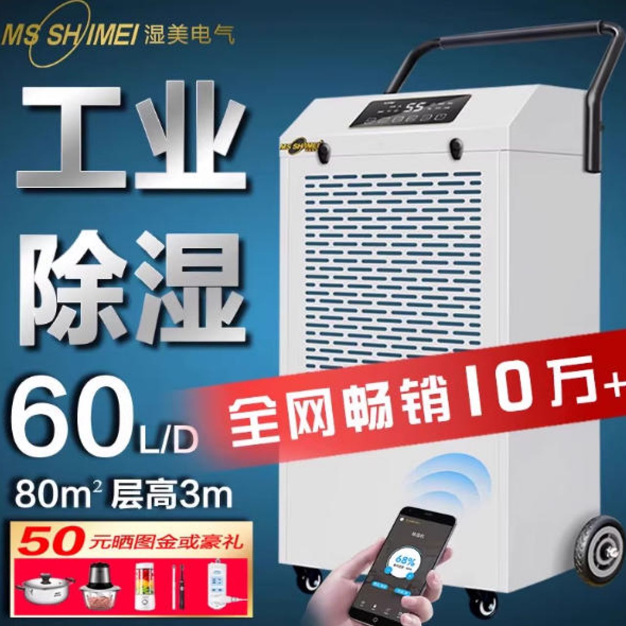 湿美工业除湿机 适用:80~200㎡车间仓库地下室除潮抽湿器MS-860D