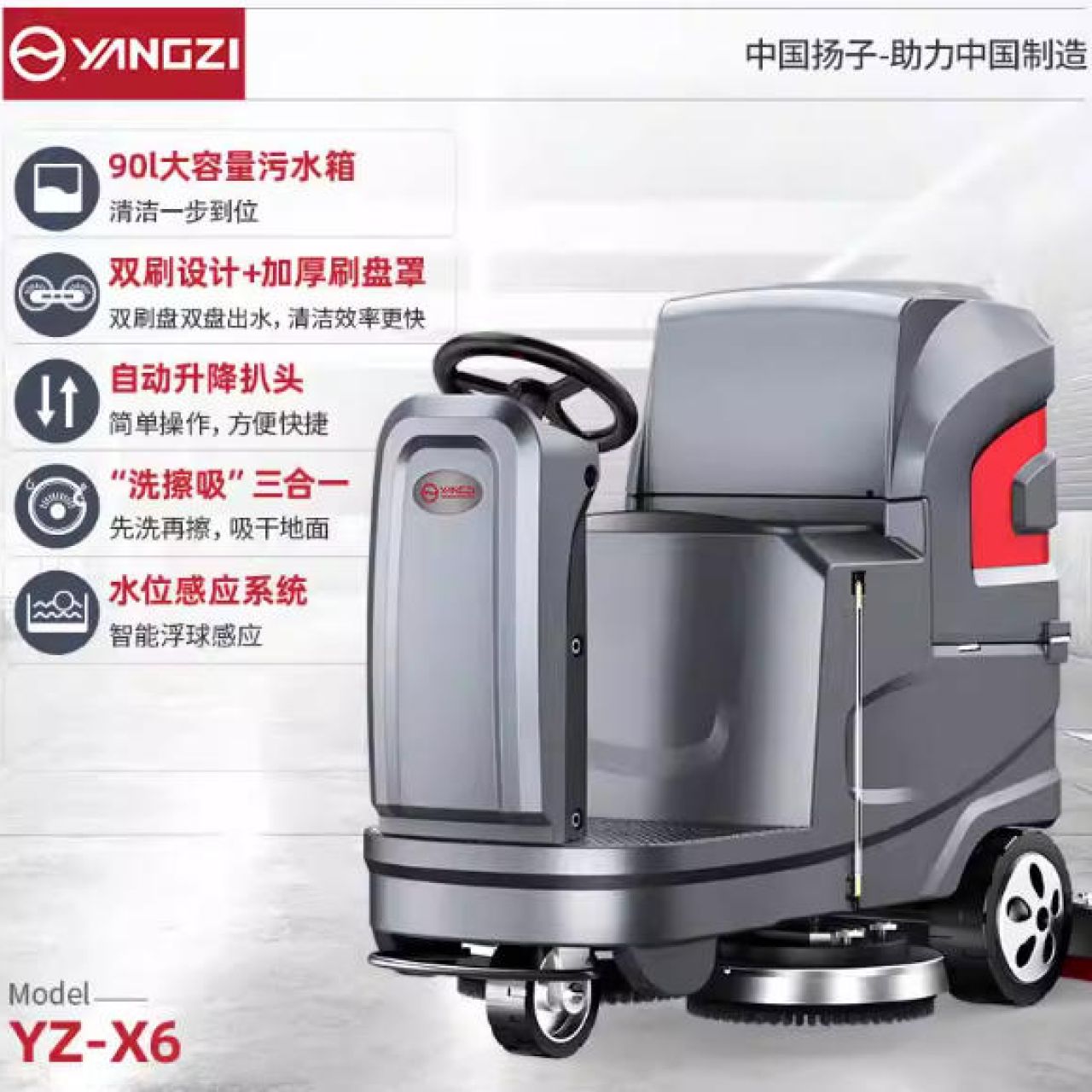 扬子x6驾驶式洗地机工厂工业车间仓库洗地车商场超市车库拖地机